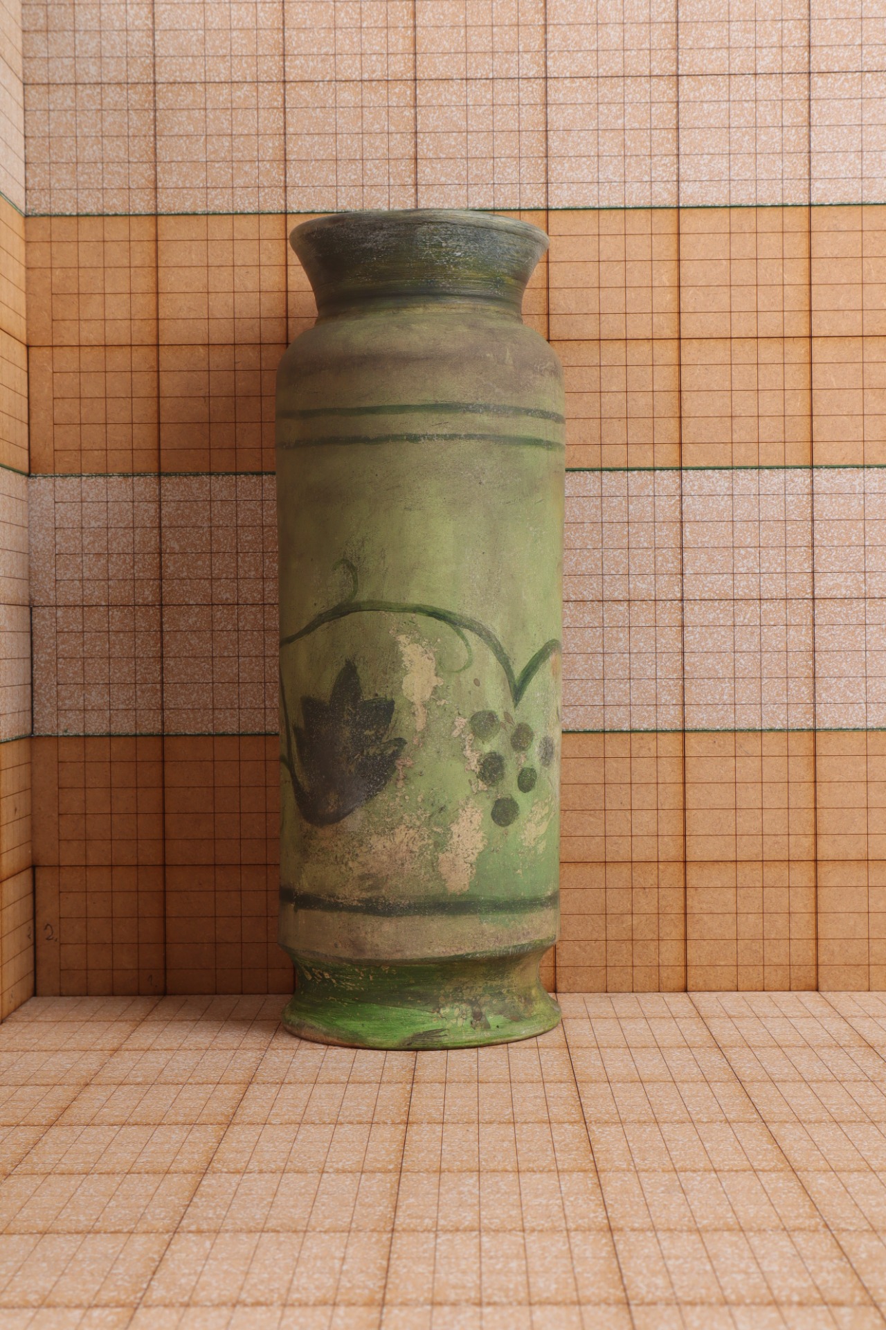 Festett, szőlőmintás kerámia kiöntő, váza