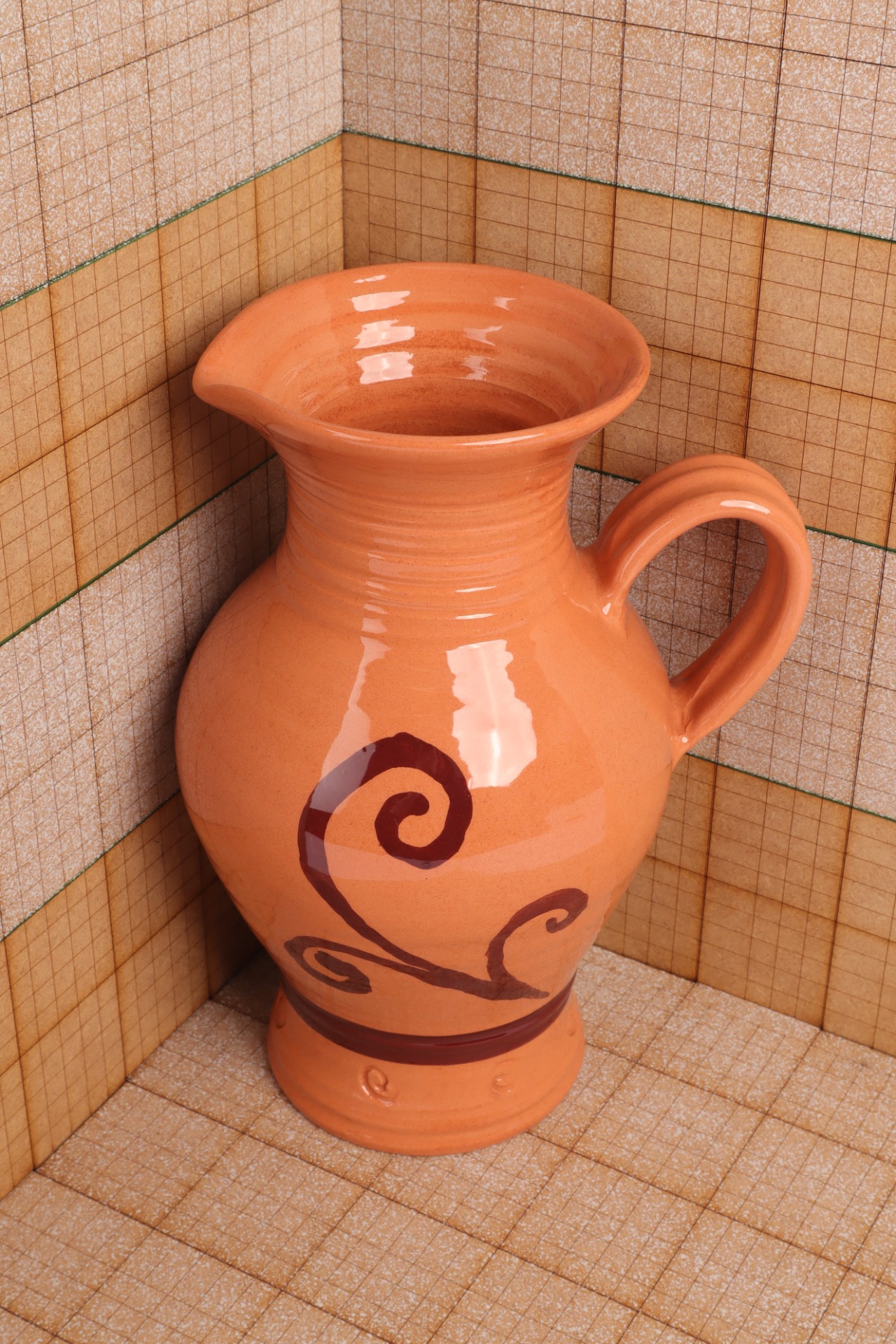 Mázas, mintás világos kerámia kancsó